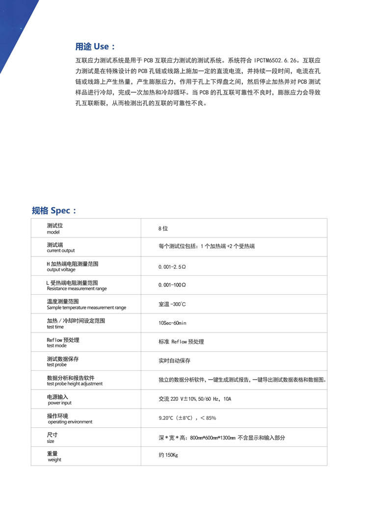 上海柏毅IST互連應(yīng)力測試系統(tǒng)滿足IPC-TM-650 2.6.26要求,主要特點有: